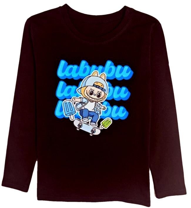 Labubu Sweater Lange Mouwen Skateboard Zwart Blauwe Tekst